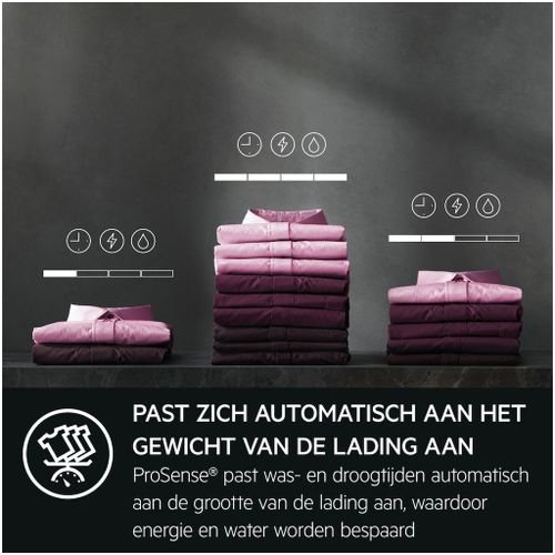 Met de ProSteam®-technologie worden kledingstukken aan het einde van de cyclus gestoomd. Dit vermindert kreukels en verfrist gedragen kleding zonder volledig te wassen.