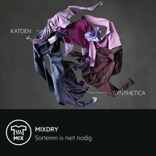 MixDry. Sorteren niet nodig, makkelijk, droog katoen en synthetica samen