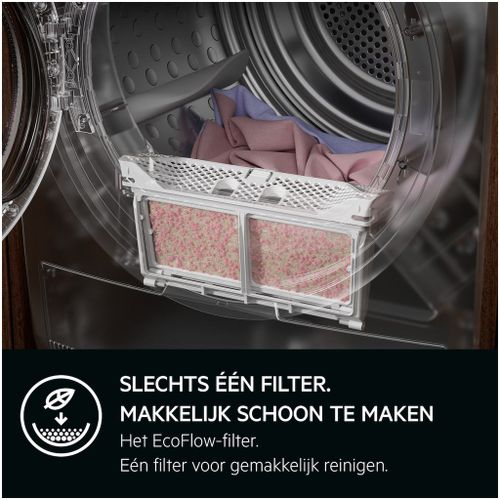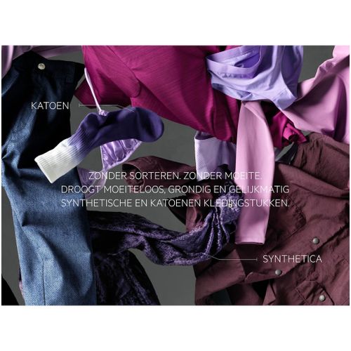 Mild drogen op de helft van de temperatuur. Geen compromissen op resultaten.De 7000 SensiDry® droger maakt gebruik van warmtepomptechnologie en droogt kleding gelijkmatig, op lage temperaturen, zonder de droogtijd te verlengen. Mild drogen zorgt ervoor dat kledingstukken nooit worden blootgesteld aan onnodige hitte, zodat je kleding langer meegaat. MixDry, sorteren niet nodig. Makkelijk, droog katoen en synthetica samen.MixDry droogt moeiteloos, grondig en gelijkmatig synthetische en katoenen kledingstukken zonder overmatig of te weinig drogen. Sorteren overbodig. De warmtepomptechnologie garandeert dat je wasgoed de exacte hoeveelheid warmte krijgt, waardoor het energieverbruik laag blijft.MixDry, sorteren niet nodig. Makkelijk, droog katoen en synthetica samen**Getest op een lading gemengde katoenen en synthethische stoffen tot 5 kg. PreciseDry, bespaart tijd en energie. Beschermt je kleding.De geavanceerde vochtigheidssensoren van PreciseDry helpen tijd en energie te besparen. Ze passen de tijd en het energieverbruik proportioneel aan op basis van de lading. Geven de juiste zorg aan elke lading, zodat kleding er langer op zijn best uit ziet en aanvoelt. EasyClean-filter. Voor langdurige prestatiesMaak onderhoud van je droger nog eenvoudiger met EasyClean-filter. Deze is gemaakt om te worden geopend als een boek en houdt pluisjes vast, waardoor het snel en eenvoudig kan worden schoongemaakt. Je droger blijft soepel werken, levert geweldige resultaten af en vermindert energieverspilling. Antikreuk, droogt je kleding gelijkmatig, voor minder kreukelsDe antikreuktechnologie van onze droger laat de trommel in twee richtingen roteren, waardoor kleding gelijkmatiger wordt gedroogd en het aantal plooien en kreukels wordt verminderd. Volledig omkeerbare deur, biedt vier handige opties voor de positie van de greepDe volledig omkeerbare deur geeft je de keuze uit vier verschillende posities voor de greep. Dus of je nu je apparaten op elkaar stapelt, of ze naast elkaar zet, je kunt de deur openen in de richting die jou het best past.