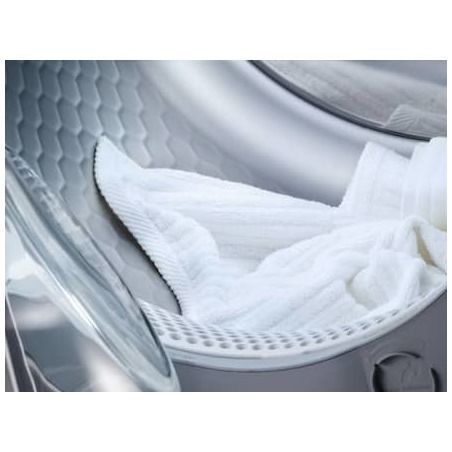 De unieke SoftCare-trommel met honingraatstructuur zorgt voor een zachte behandeling van je wasgoed. Dit vermindert slijtage en kreukvorming, waardoor je kleding langer mooi blijft en het strijken eenvoudiger wordt.